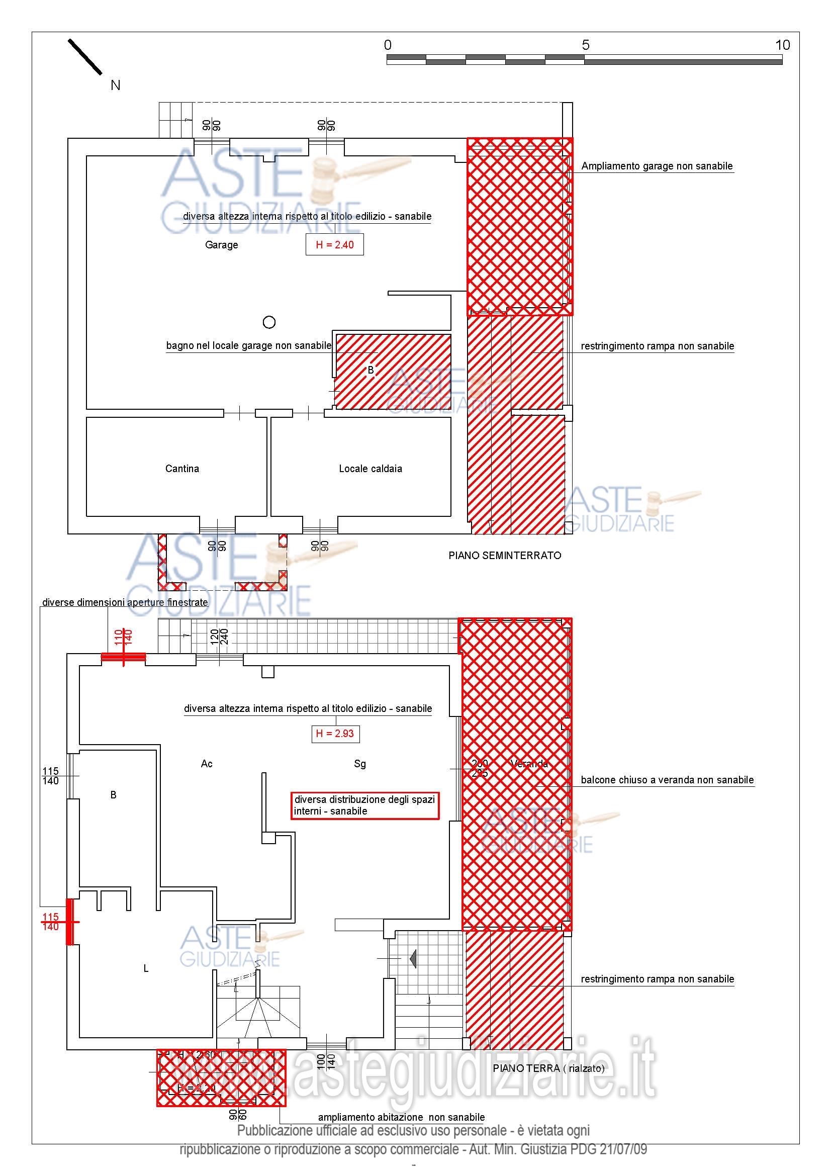 Vendita all'asta Senza incanto - LOTTO unico: villino articolato su tre livelli (S1-T-1); il piano terra è collegato con il piano primo da una scala interna, mentre il piano seminterrato ha