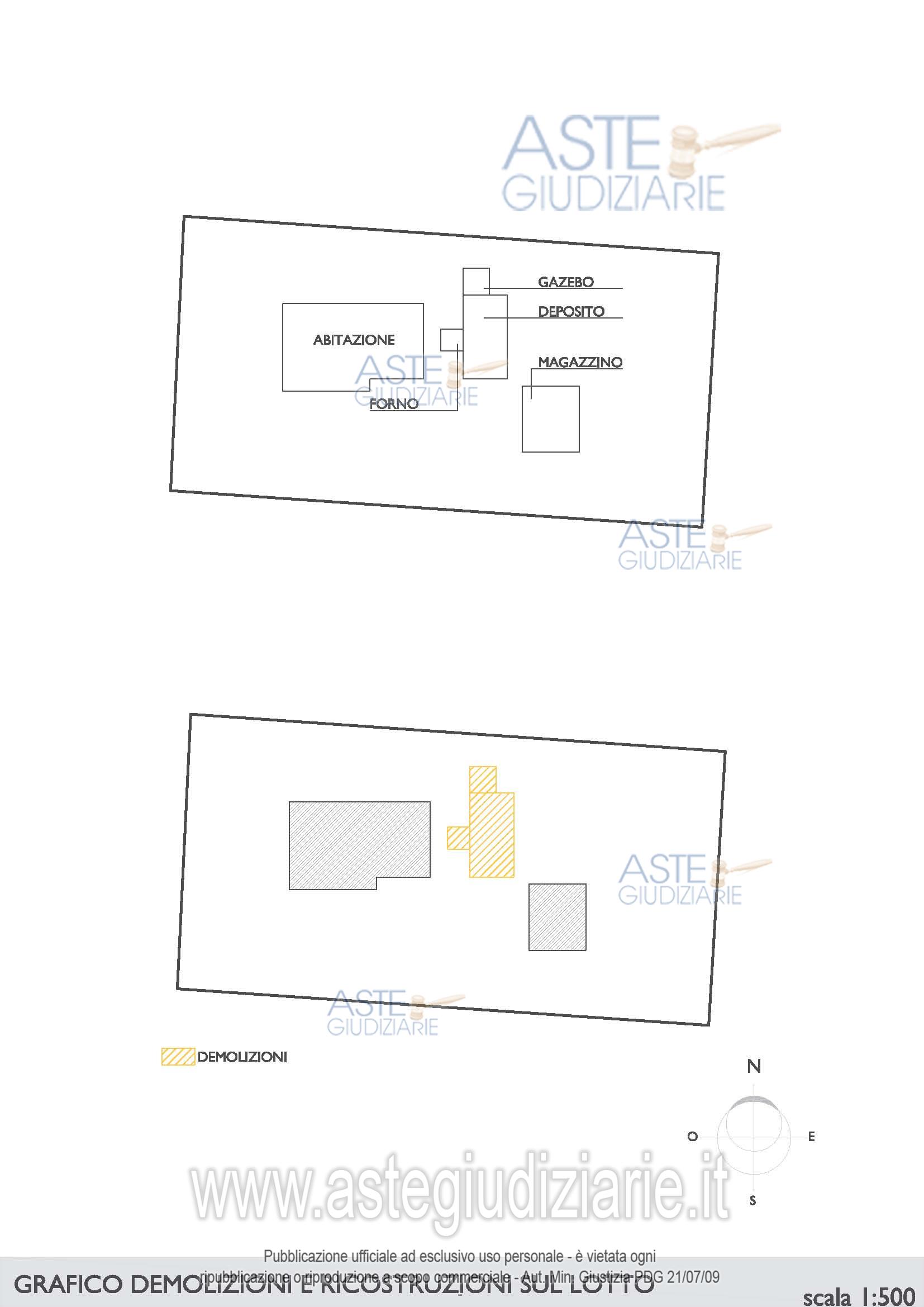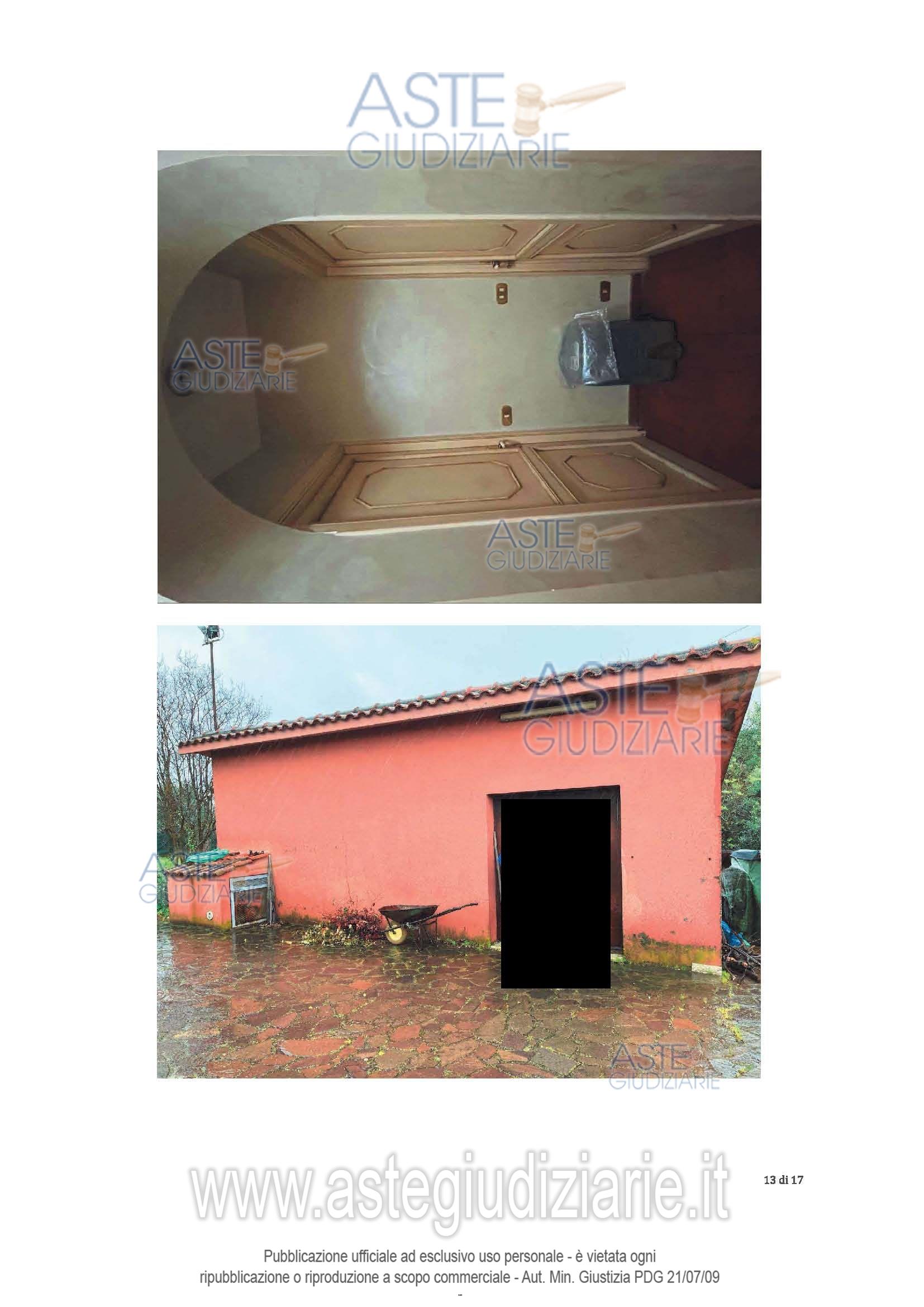 Vendita all'asta Senza incanto, con gara telematica asincrona - LOTTO UNICO: Villetta unifamiliare su due livelli, piano terra e primo con annessi terreno di mq. 5.533,00, magazzino della superficie netta di circa mq. 45,00, forno in muratura, gazebo in legno, locale tecnico utilizzato come centrale termica, deposito con bagno e portico. Prezzo base € 146.250,00 (offerta minima € 109.688,00). Data inizio operazioni di vendita: 09/06/2026 ore 10:00. Professionista delegato alla vendita Avv. Maria Laura Gentilezza.