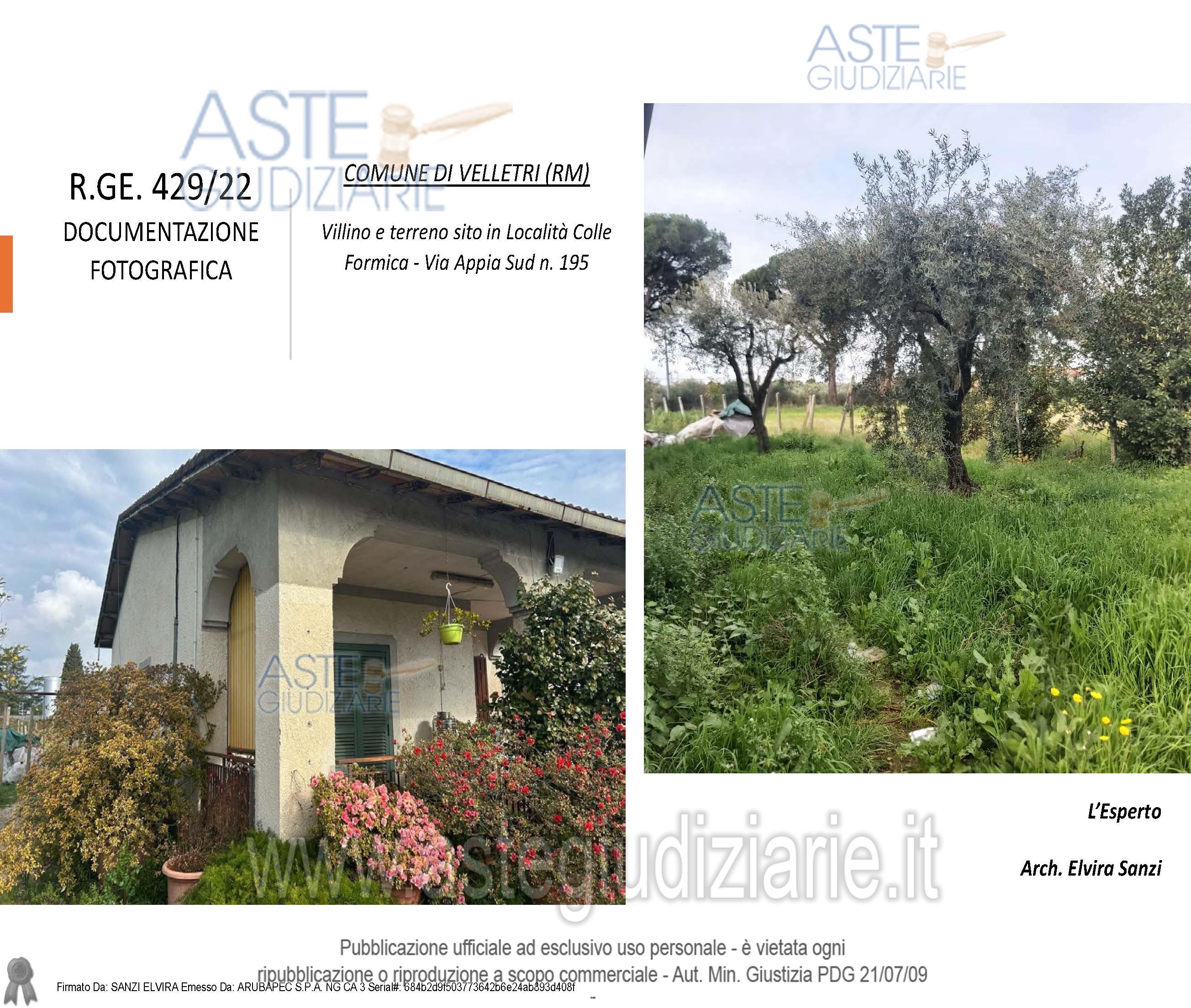 Vendita all'asta Senza incanto, con gara telematica asincrona - LOTTO UNICO: Villetta disposta su unico livello, con annessa corte di pertinenza e terreno agricolo di circa mq 1248. Prezzo base € 124.000,00 (offerta minima € 93.000,00). Data inizio operazioni di vendita: 11/02/2026 ore 10:00. Giudice Raffaella Calvanese. Professionista delegato alla vendita Avv. Deborah Petrilli - Tel. 069631191. Custode Giudiziario Avv. Deborah Petrilli - Email "studiolegalepetrilli@gmail.com". Rif. Tribunale di Velletri - Esecuzione immobiliare post legge 80 n. 429/2022