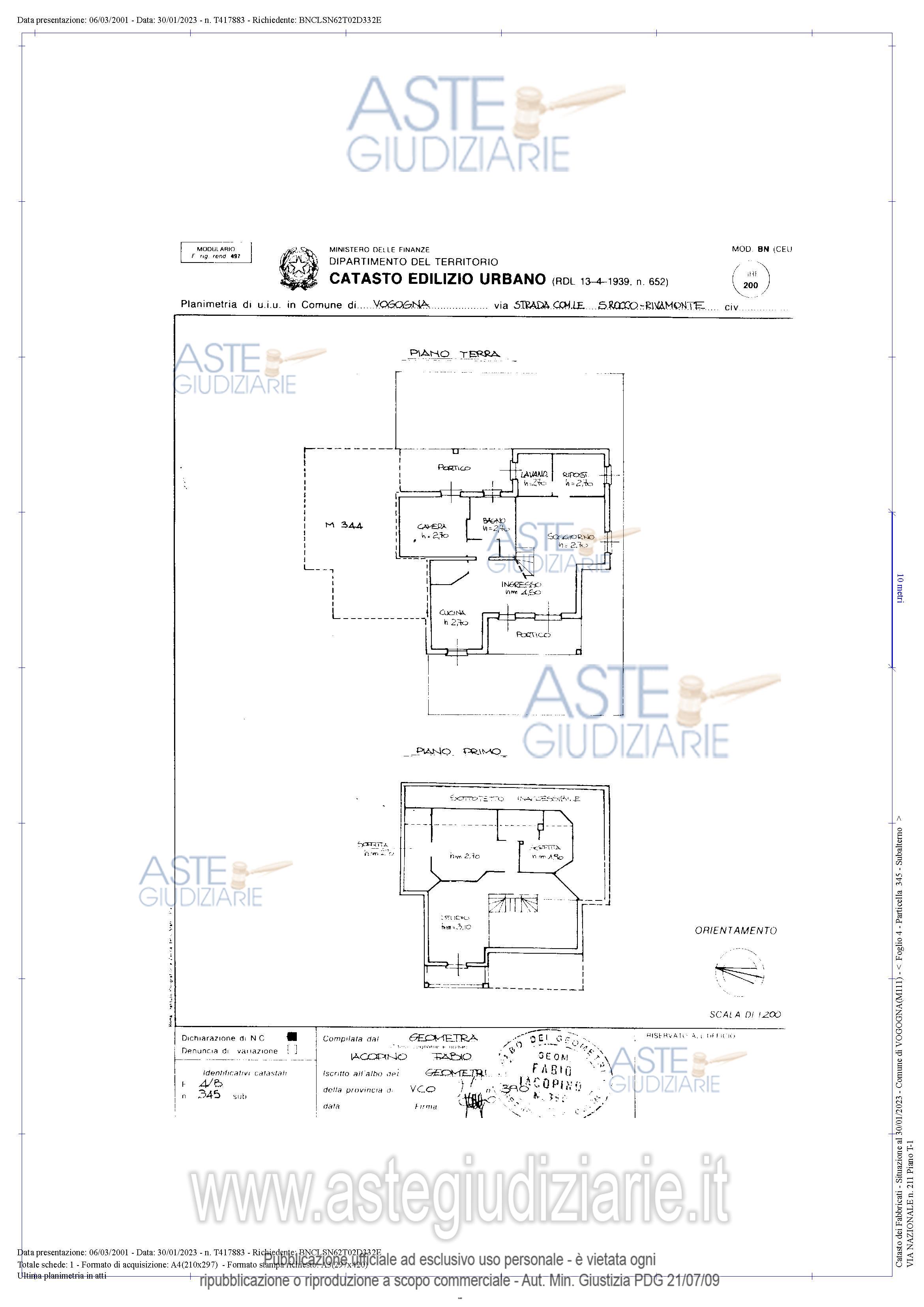Vendita in attesa dell'emissione del nuovo bando d'asta. LOTTO UNICO: Intera quota di proprietà di una villetta elevantesi su due piani fuori terra, con area di corte pertinenziale su tre lati e quarta facciata in aderenza ad altra unità immobiliare, costruita tra gli anni 1999-2002. Al piano primo (sottotetto) servito da scala in legno interna, ballatoio, due camere da letto, guardaroba, disimpegno, bagno, vano tecnico e parte di sottotetto inaccessibile oltre lavanderia e parte di ripostiglio. Ultimo prezzo base € 156.800,00 (offerta minima € 117.600,00). Giudice Dott. Caterina Sinico. Custode Giudiziario Aste Giudiziarie Inlinea Spa - Email "ufficiocustodie@astegiudiziarie.it". Rif. Tribunale di Verbania - Esecuzione immobiliare post legge 80 n. 17/2022